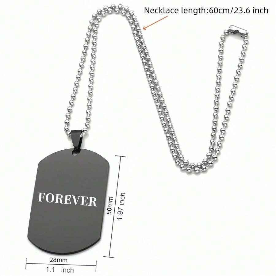- Military-Style: Classic vertical dog tag design for a modern, unisex look.